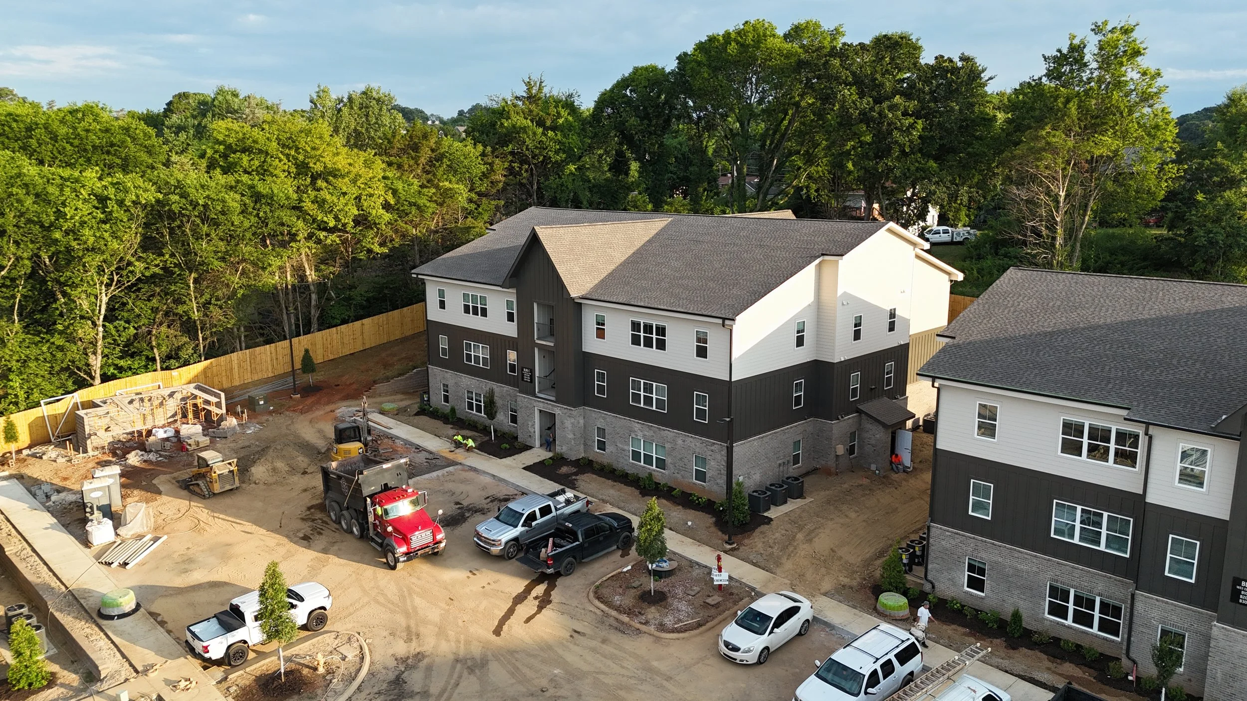 This project includes a 47 unit apartment complex with three 12 unit buildings and one 11 unit building with a clubhouse, as well as parking and a playground area. The apartments include three and four bedroom layouts.