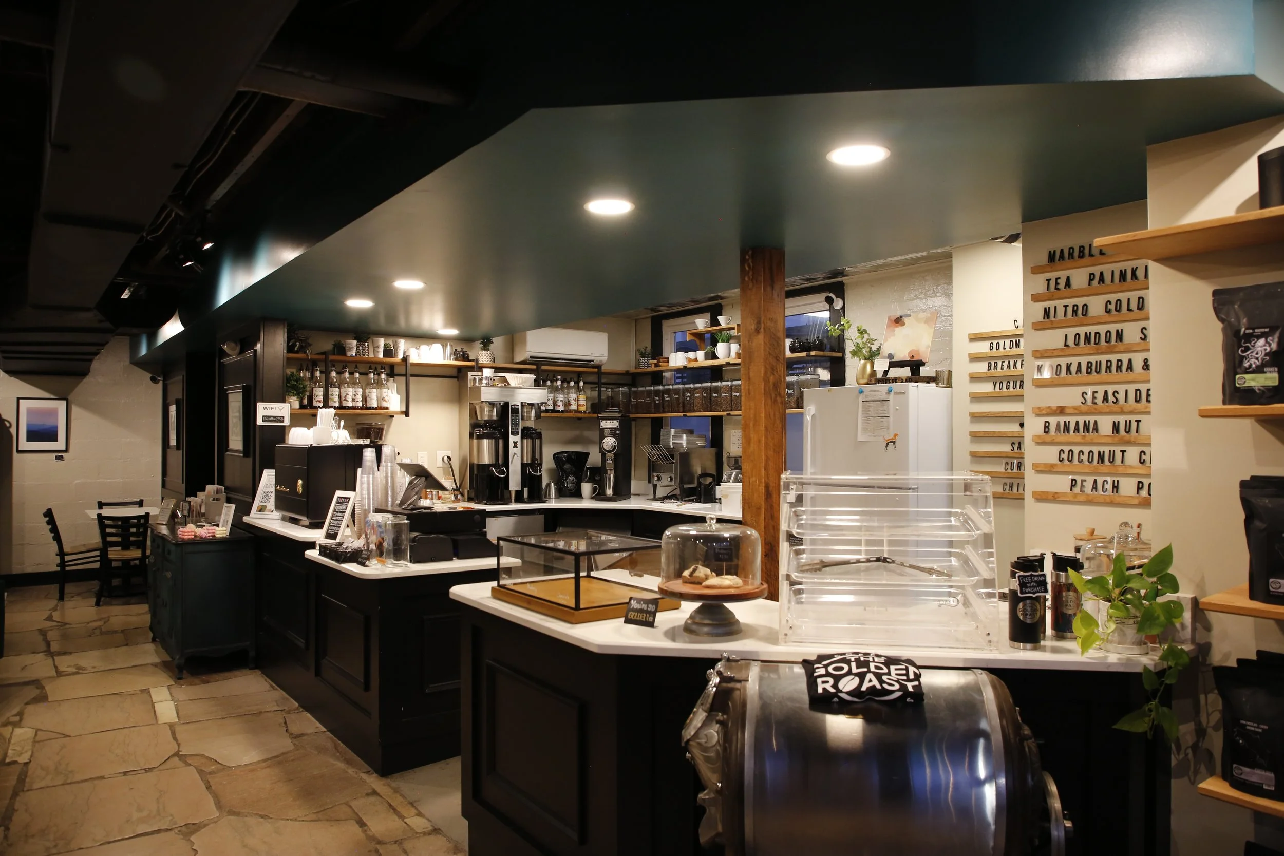An adaptive reuse of a historic church fellowship hall located on Sutherland Ave for The Golden Roast coffee house.